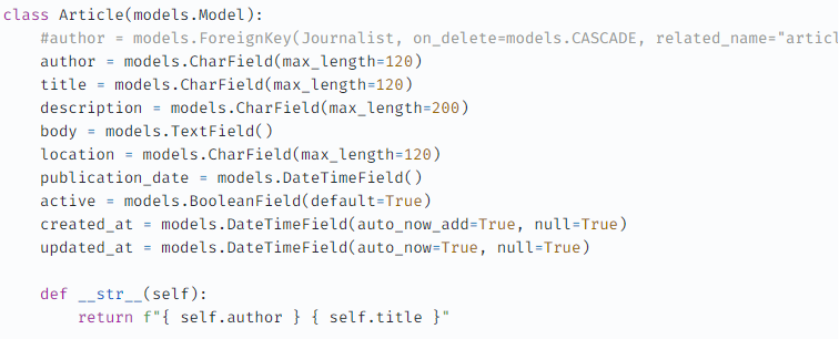 -> 결과 {'author': 'Jone doe', 'title': 'How to be CEO', 'description': "it's tough", 'body': 'hahaha', 'location': 'Seoul', 'publication_date': datetime.datetime(2020, 7, 8, 9, 12, 41, tzinfo=<UTC>), 'active': True} <Article: Jone doe How to be CEO>