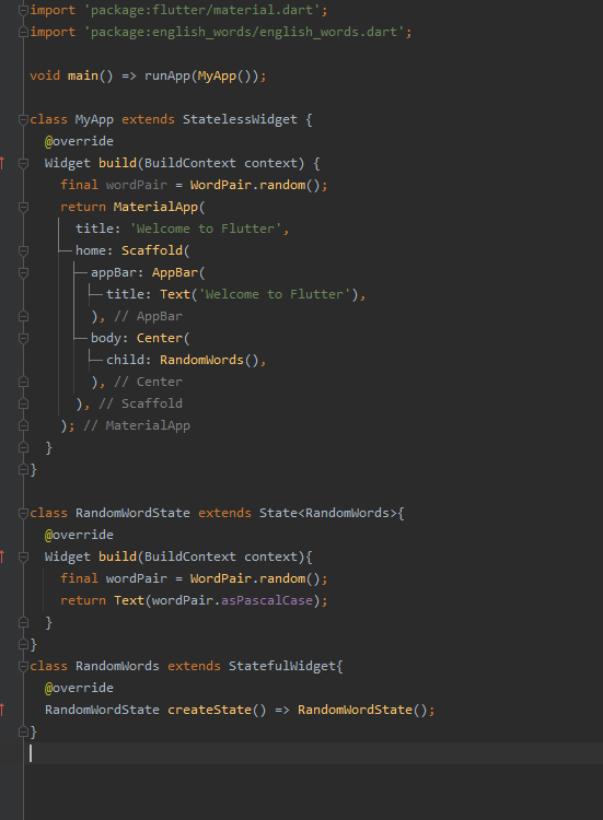 - RandomWords 클래스가 StatefulWidget을 상속한 클래스